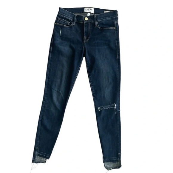 Frame Denim Womens Le Skinny de Jeanne Mid-Rise Denim Distressed Jeans