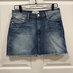 Frame Denim Womens Mini Frayed Hem Jean Skirt Size 28 Blue Wash Festival