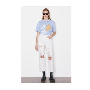 Frame Womens White High Rise Le Jane Ripped Cropped Flare Leg Jeans Sz 28 NWT
