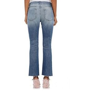 Frame Denim X Barney’s Mini Boot Klinefled Blue Distressed Cropped Denim Raw Hem Ripped Jeans Boho Contemporary.