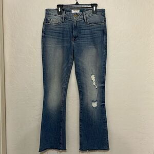 Frame Denim X Barney’s Mini Boot Klinefeld Blue Distressed Cropped Ripped Jeans