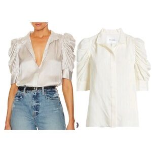 Frame Denim silk blend Gillian blouse in Bone size Large