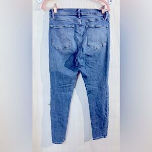 Experience the perfect blend of style and comfort with these Frame Denim skinny jeans in a classic blue hue. Crafted for a sleek silhouette, these jeans offer a versatile look suitable for any occasion. The rich blue color and premium denim ensure a timeless appeal.