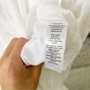 Frame Eyelet Puff Sleeve Mini Dress in white.