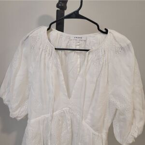 Frame Eyelet Puff Sleeve Mini Dress Small