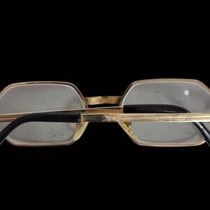 Step back in time with these unique Frame France vintage gold tone heptagon shaped eyeglasses frames! These frames exude a sophisticated retro vibe, perfect for anyone looking to add a touch of classic elegance to their style. The distinctive octagonal shape sets them apart, offering a chic and intellectual look. 14K gold metal with subtle detailing that speaks to their vintage craftsmanship.