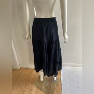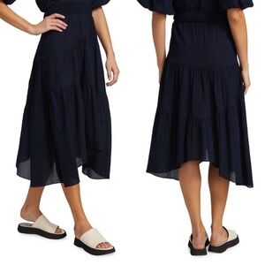Frame Gathered Seam Navy Blue Midi Shirred Cotton Skirt Asymmetrical Hem Size M