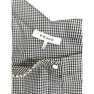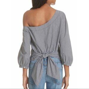 Frame Gingham Print Top Tie Back Off the Shoulder Black White SZ L New $260