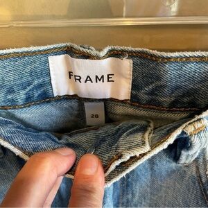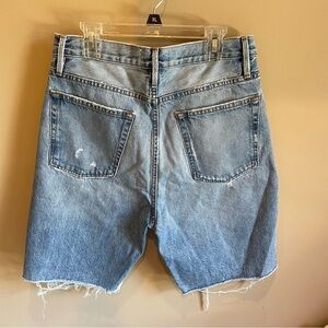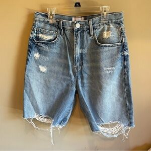 Frame High Rise Denim Bermuda Shorts in Baines Rip