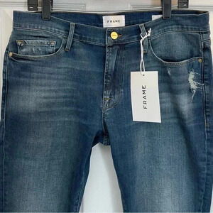 “Refresh your denim collection with these FRAME jeans cut from stretch denim in a relaxed ankle length silhouette perfect for weekend dressing.