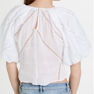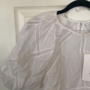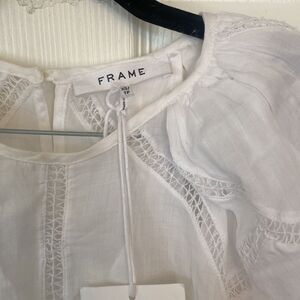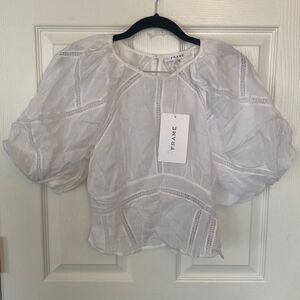 Frame Inset Lace Gathered Seam White Puff Sleeve Top Size XS NWT