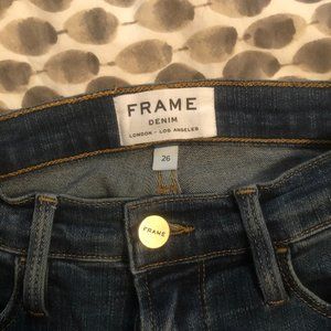 26 inch waist and 26 inch inseam wide leg Frame jeans. In great condition. Fun cropped length that look great with any type of shoes.