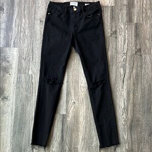 Frame Jeans Black Le Skinny de Jeanne Jeans Distressed Size 28 Noir Rips
