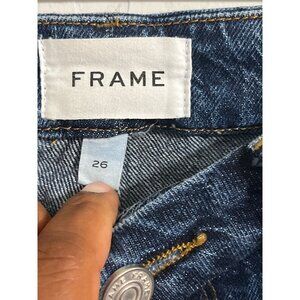 Frame Jeans Le Crop Mini Boot Medium Wash Raw Hem Denim in Hallam 26
