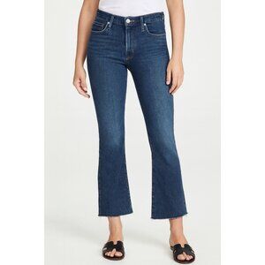 frame jeans, le crop mini boot, bootcut jeans, raw hem, frayed hem, cropped jeans, high rise, classic denim, medium wash, blue jeans, modern chic, casual style, minimalist look, capsule wardrobe, everyday wear, street style, premium denim, flattering fit, wardrobe staple, California style, effortless chic, capsule wardrobe piece