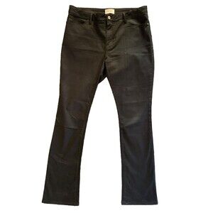 FRAME Women's Black Coated Denim Jeans in size 32. A coated finish lends to a leather-like effect on Frame's Le Mini Boot jeans. These bootcut jeans feature a high rise and are machine washable. Made of cotton and elastane, they have a 5-pocket design, and zipper/button closure. The timeless neutral jeans are suitable for winter, fall, and spring seasons.