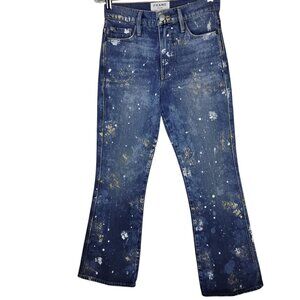 Frame Jeans Le Sylvie Kick Boot Out Paint Splatter Fray High Rise Crop Denim 24
