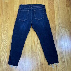 Beautiful slim skinny cropped jeans, low-mid rise, dark wash, lightly distressed, Le Garcon Crop,
