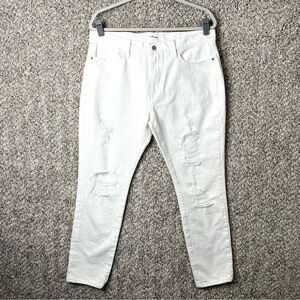 New with Tags Women’s Frame White Le Garçon Rumpled Blanc Rips Distressed Mid-Rise Straight Fit Jeans in Size 30