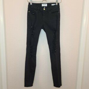 Frame Jeans Womens Size 26 Black Denim Skinny Low Rise Distressed Stretch Casual