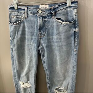 Frame La Garcon Distressed Jeans Relaxed Fit Light Wash Degradable Jeans Size 29