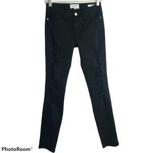 Frame Le Color Rip Skinny Jeans in the color Film Noir