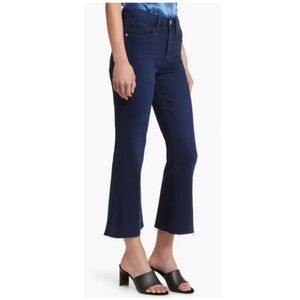 Frame Le Crop High Rise Flare Raw Hem Jeans Fiona Dark Washed Denim 32