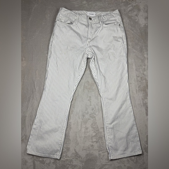 Frame Le Crop Mini Boot Cobalt Multi Blue White Striped Cotton Blend Jeans 28