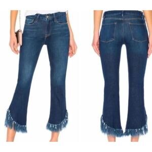 Frame Le Crop Mini Boot Jean US 26 Fringe Shredded Hem Blue Dark Wash Boho