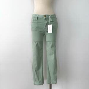 Frame Le Crop Mini Boot Mid-Rise Denim Jeans Pants in Aloe Light Green 26 NWT