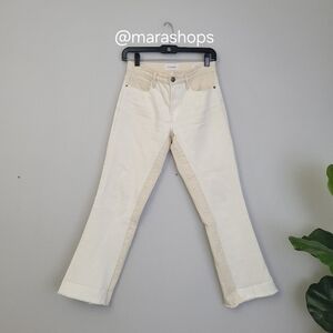 Make a new season statement in this two-tone pair of cropped bootcut jeans.