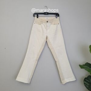 Make a new season statement in this two-tone pair of cropped bootcut jeans.