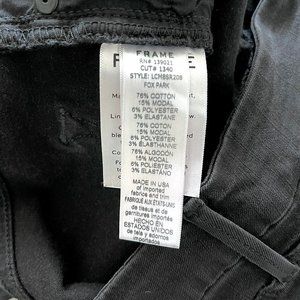 A stretchy cropped boot cut style from Frame Denim, the Le Crop Mini Boot Jean in Fox Park features a mid rise fit with a slightly flared silhouette and an angled, shredded raw hem for an ultra cool twist. With a single button zip fly closure, 5-pocket styling, and black hardware. Size 26. These jeans have only been worn 2-3 times and are in great pre-owned condition.