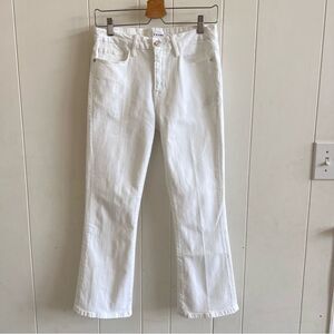 In great preloved condition from a smoke and pet feee home . Please review all photos before purchase and bundle for a great price. The everyday-favorite fit of these FRAME jeans comes updated in a warm-weather shade. With a cropped hem and easy boot-cut leg, they are the perfect pair for showing off your new favorite sneakers. Intended for a high rise with a cropped bootcut leg. Stretch denim maintains its shape wear after wear due to high retention elastane.