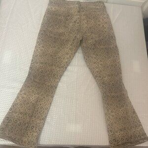 Size 28, Color tan. Fits true to size, High rise: 9.75”, Cropped inseam: 26.5"; Leg opening: 17.5"; Zip fly with button closure, five-pocket cropped bootcut silhouette; Allover snakeskin print. Excellent condition--looks amazing paired with wedges.