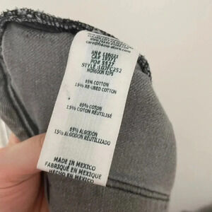 Features: zip fly with button closure, front and back pockets, mid rise, straight leg, relaxed fit denim, distressed knees, front step/cuffed raw hem, cotton blend