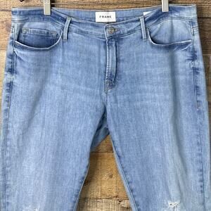 Frame Le Garcon Crop Straight Leg Jeans Cebu Rips Light Blue Size 31