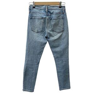 Tags: Frame jeans, distressed denim, light wash jeans, size 24 jeans, women's jeans, casual jeans, everyday wear, comfortable fit, blue jeans, cotton denim, lyocell blend, modern style, stylish pants, casual