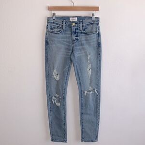 Frame Le Garçon Distressed Beldon Rips Cropped Straight Leg Jeans Sz 24