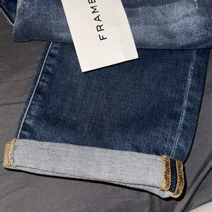 Designed to sit on the hips and taper into a cuff that hits at the ankle.