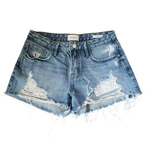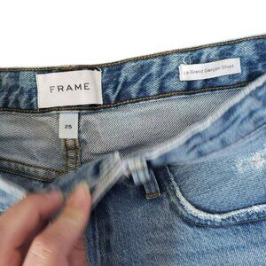 Frame Le Grand Garcon Short Womens 25 Distressed Cutoff Jean Shorts Patina Rips
