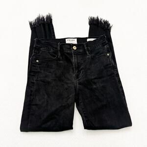 Frame Le High Skinny Assymetrical Hem Denim Jeans Black Size 26