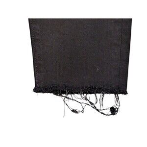 Frame Le High Skinny jeans in size 27. Black denim with distressed knee details and frayed raw hem. Mid-rise skinny fit offers a flattering silhouette with comfortable stretch.