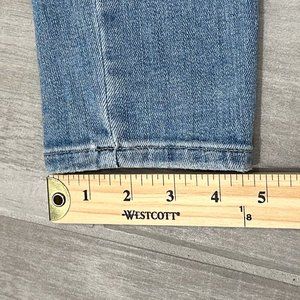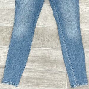 "Ultra lean legs and a flattering high rise make the FRAME Denim Le High Skinny a closet staple silhouette. Crafted from premium denim in a medium-indigo wash, the curve hugging pair is defined by its two-tone wash pocket. Zip fly with button closure. 4-pocket design with intentionally cut-out back pocket. Intentionally distressed throughout. Light fading and whiskering detail.”