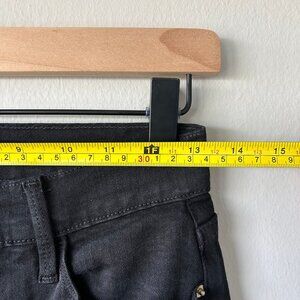 • Details: High-waisted cut, skinny leg, black stretch denim with clean finish