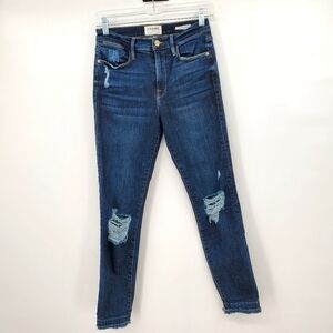 Frame Le High Skinny Jeans Raw Hem Distressed in Montclair, Size 27.