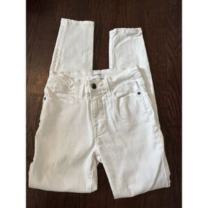 Classic 70s inspired high-rise with a contemporary skinny silhouette. Crafted from premium white denim with super stretch and strong recovery.