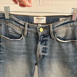 Frame Le High Straight In Surrey Jeans Raw Hem Edge Slit Ankle Size 25