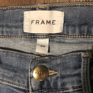 Frame Le High Straight Jeans Women's 30 Relaxed Raw Hem Cropped in Eros Wash