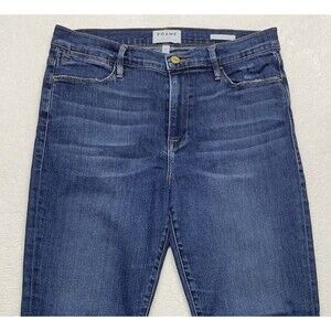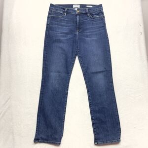 Frame Le High Straight Jeans Women's Size 30 Distressed Hem Stretch Blue Denim.